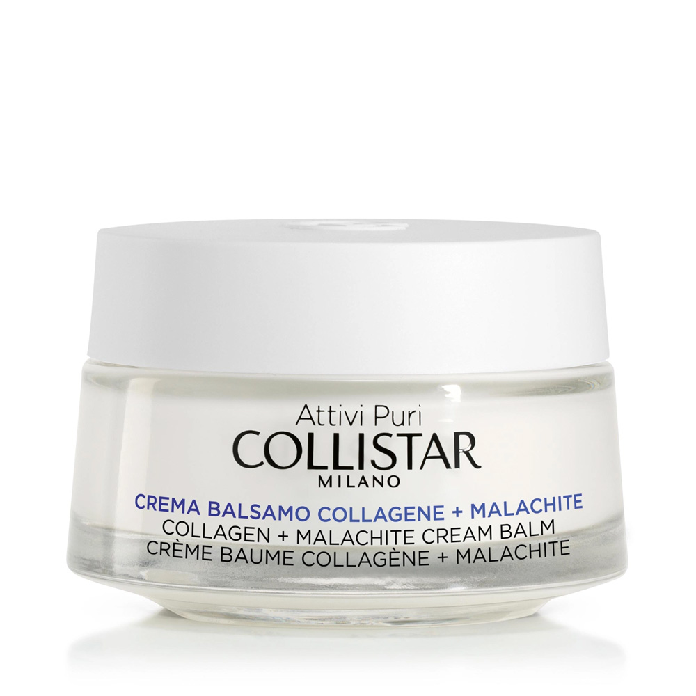 Crema Balsamo Collagene + Malachite: è un antirughe rassodante. Trattamento in crema-balsamo con Aminoacidi di Collagene Vegetale per garantire un'intensa azione anti-invecchiamento, rassodante e antirughe. Al Collagene Vegetale è associata la Malachite, estratto minerale ricco in rame, prezioso alleato per la protezione della pelle dall'invecchiamento cutaneo grazie alla sua azione antiossidante e anti-glicazione (processo degenerativo ch porta all'irrigidimento delle fibre di collagene e quindi alla perdita della loro funzionalità). Risultati: la pelle è profondamente nutrita, compatta e tonica. Progressivamente, beneficia di un nuovo sostegno, le rughe si riducono, i contorni del viso risultano più definiti.