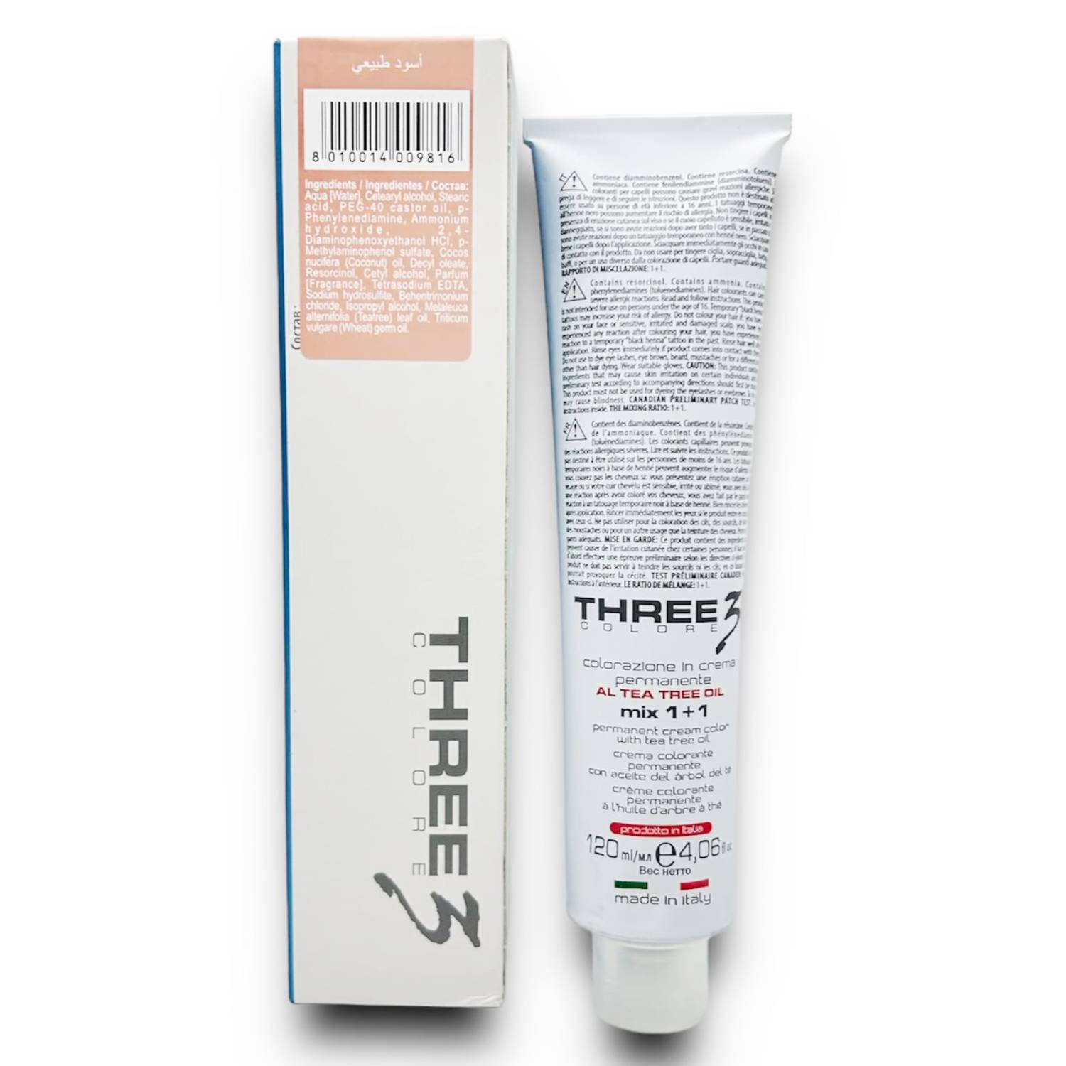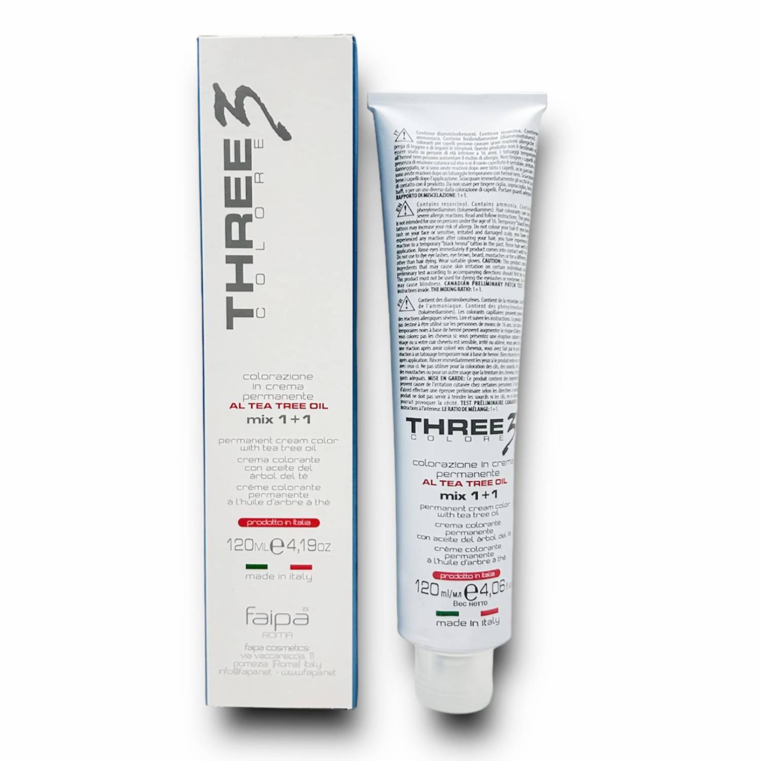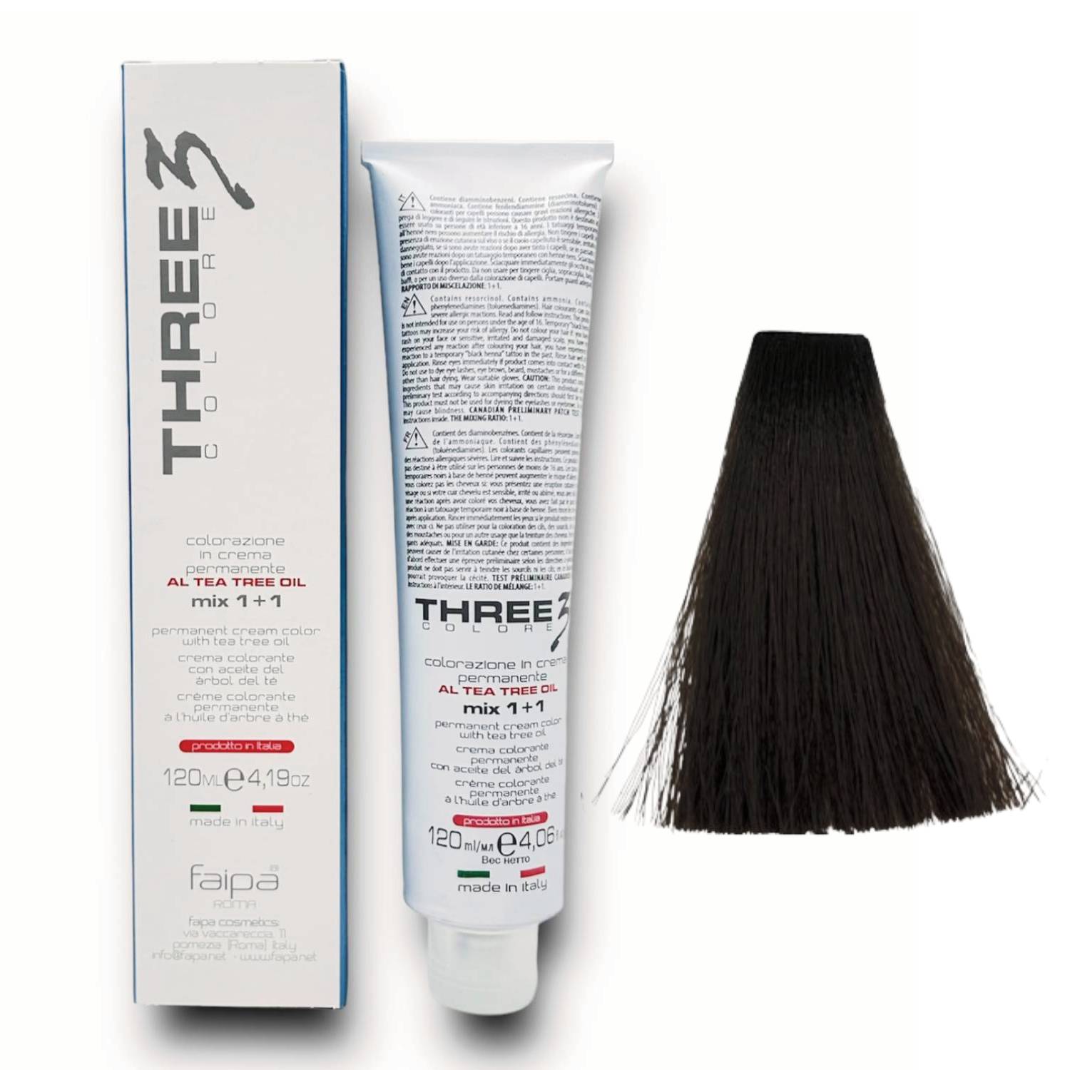 Grazie all'elevata qualità cosmetica tricologica rispetta i capelli, anche i più fragili, trattandoli con dolcezza e donando loro sofficità e brillantezza. È una colorazione formulata su base cremosa con olio essenziale dell'albero del tè e garantisce un'azione cosmetica dolce e progressiva. THREE Colore garantisce una crema morbida e facilmente miscelabile.
