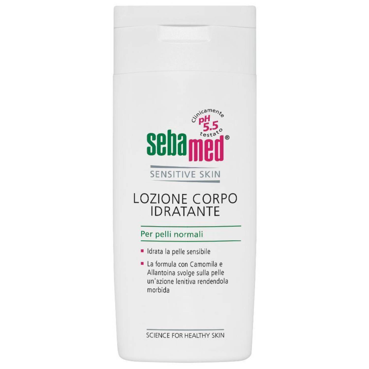 Emulsione olio in acqua leggera e idratante, ideale per uso quotidiano ed appositamente studiata per le esigenze della pelle sensibile. Con il pH fisiologico di 5.5 rafforza e protegge il mantello acido della pelle. Grazie alla formula con estratto di Camomilla e Allantoina lenisce la pelle, conferendole morbidezza ed elasticità con un effetto calmante e rinfrescante naturale. Si assorbe rapidamente e con facilità, senza lasciare residui grassi. Formula senza additivi coloranti.