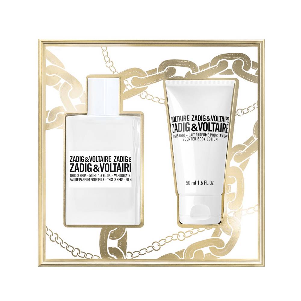 La confezione regalo Zadig & Voltaire This Is Her è un’idea perfetta per una donna che desidera esprimere la propria personalità audace e sofisticata con una fragranza moderna e avvolgente. Questo elegante set include l’Eau de Parfum This Is Her da 50 ml e un latte corpo da 50 ml, entrambi caratterizzati dalla stessa fragranza iconica e unica di Zadig & Voltaire.